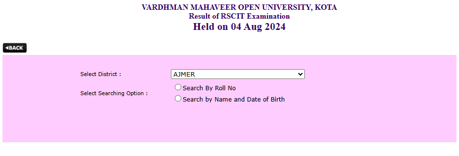 The first RSCIT offline exam is organized through Vardhman Mahaveer Open University. Which is an OMR base exam. After which the result is prepared by the department by first releasing the exam answer key. And the prepared result is activated on the official site of VMOU https://rkcl.vmou.ac.in/ for the students.